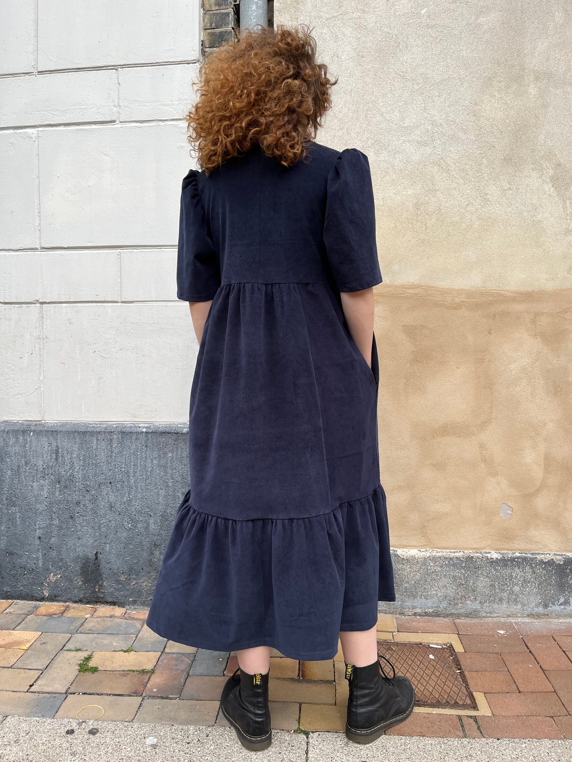 Ella kjole i mørkeblå fløjl (xs-xxl)