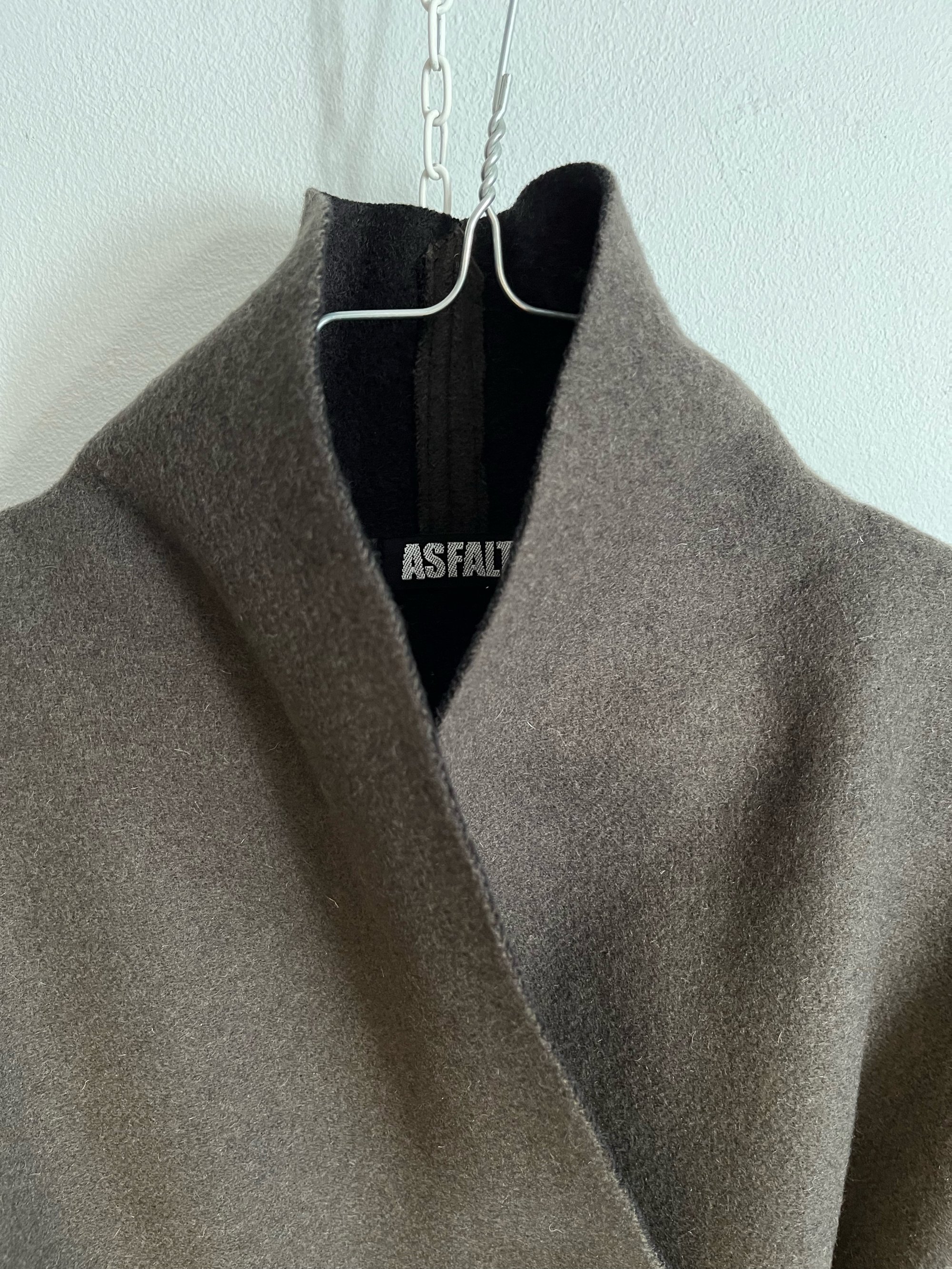 Frakken er syet med rå kanter, da det er en mega lækker tyk uld, perfekt til rå kanter.